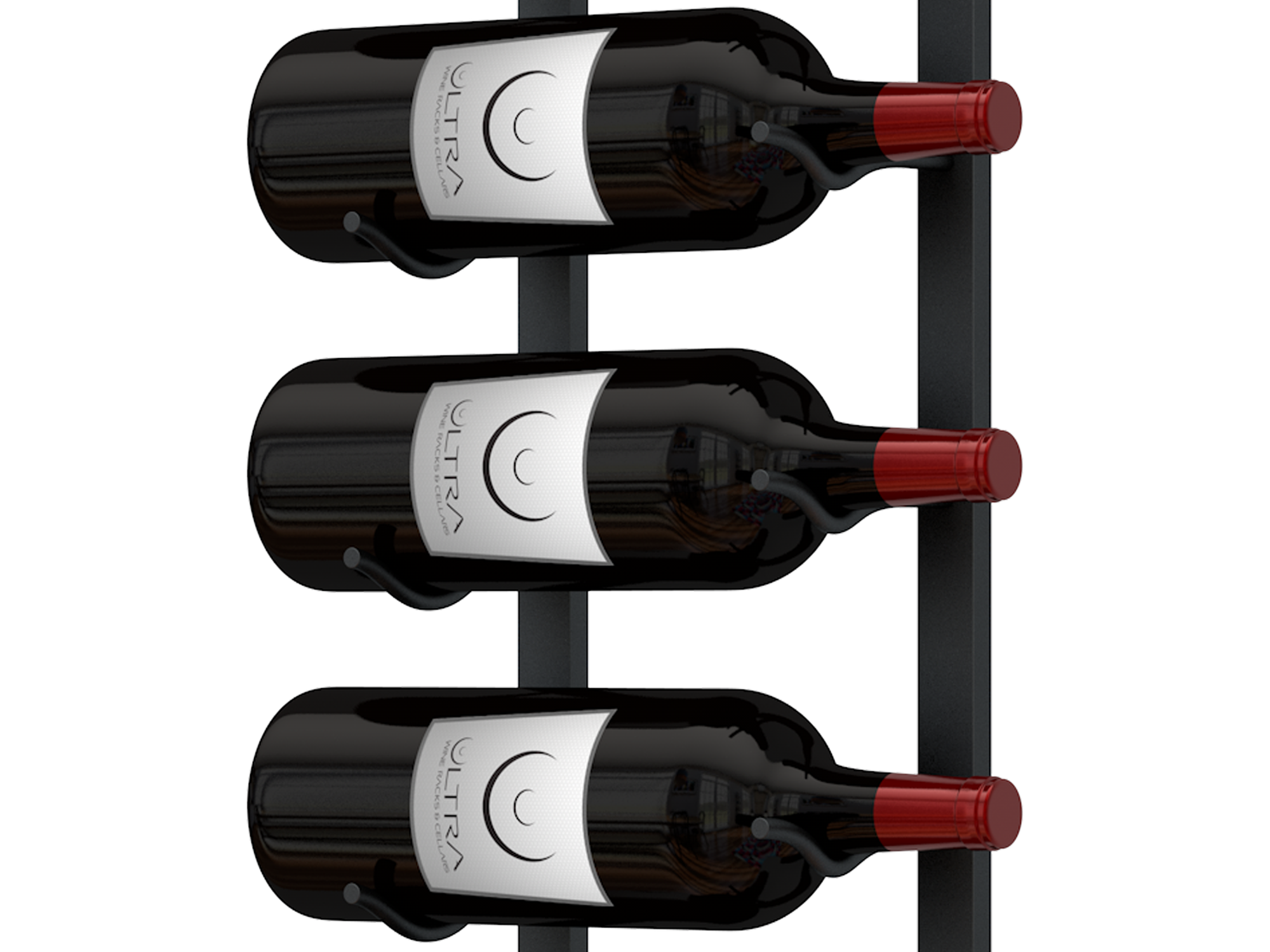 Magnum E-Series wall rails are designed to accommodate larger format bottles. The rail spacing and bottle cradles are engineered to properly support magnum bottles while maintaining the same clean, label-forward wine display.